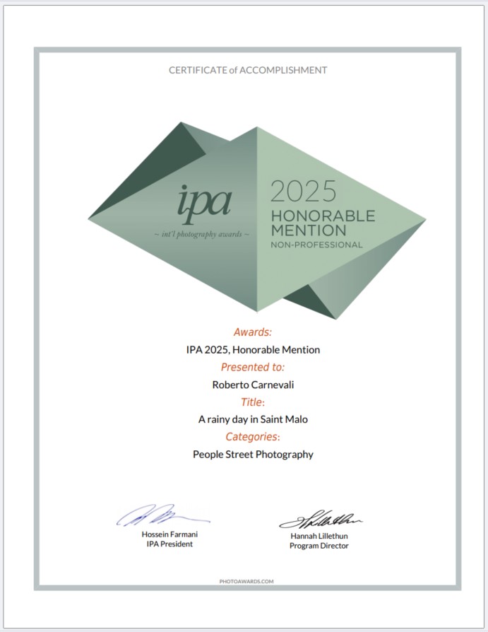 IPA - INTERNATIONAL PHOTOGRAPHY AWARDS 2025 - Winner - People/Street Photography - Roberto Carnevali - Honorable Mention