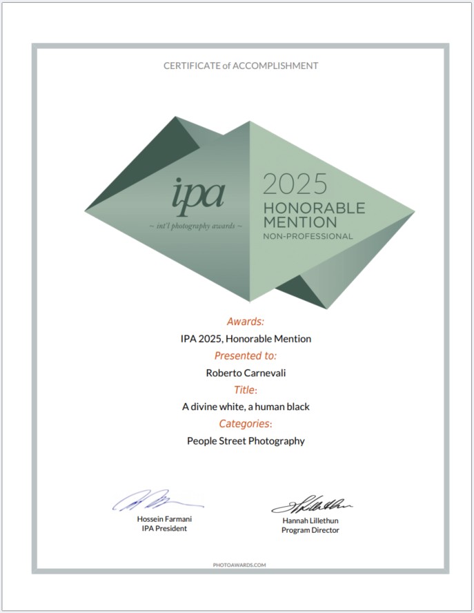 IPA - INTERNATIONAL PHOTOGRAPHY AWARDS 2025 - Winner - People/Street Photography - Roberto Carnevali - Honorable Mention