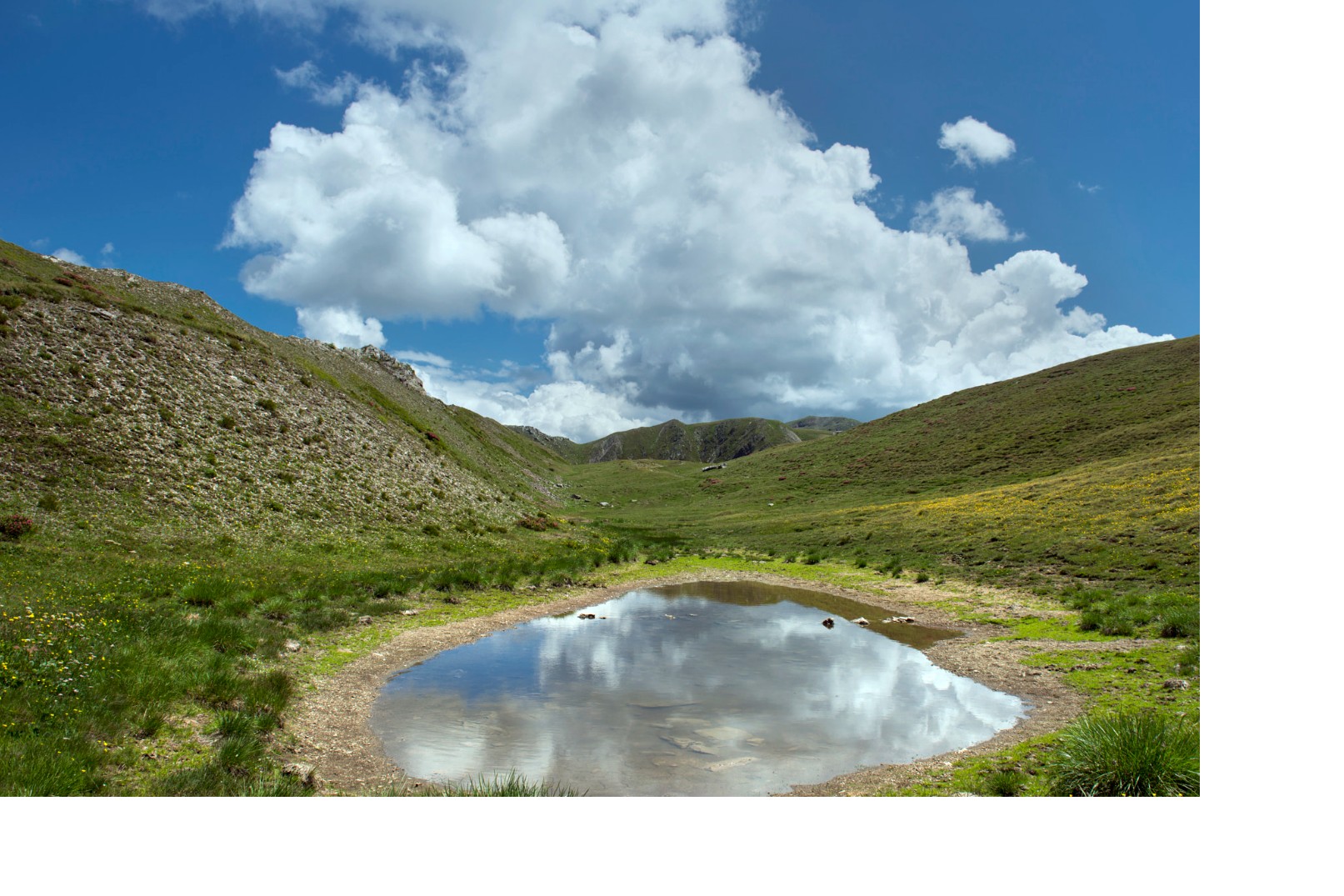 Ho realizzato questa fotografia nella stagione estiva in un avvallamento nei pressi della vetta del monte Elmo. Con le piogge dei giorni precedenti si era formato come un piccolo laghetto effimero in cui si riflettevano le grandi nuvole bianche del cielo. Da quel punto di osservazione non pareva essere sulle Dolomiti ma più sulle Highland scozzesi tanto che avevo intitolato la fotografia "Return to Skyfall".